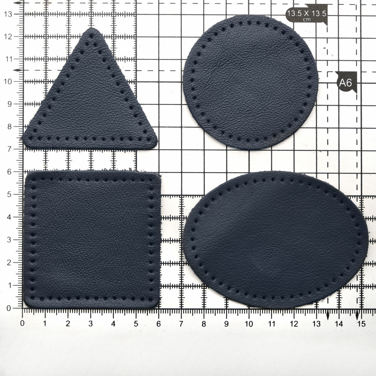 9743 Набор заплаток пришивных из кожи, круг, квадрат, треугольник, овал 8см, с перфорацией, 4шт/упак (05 темно-синий)