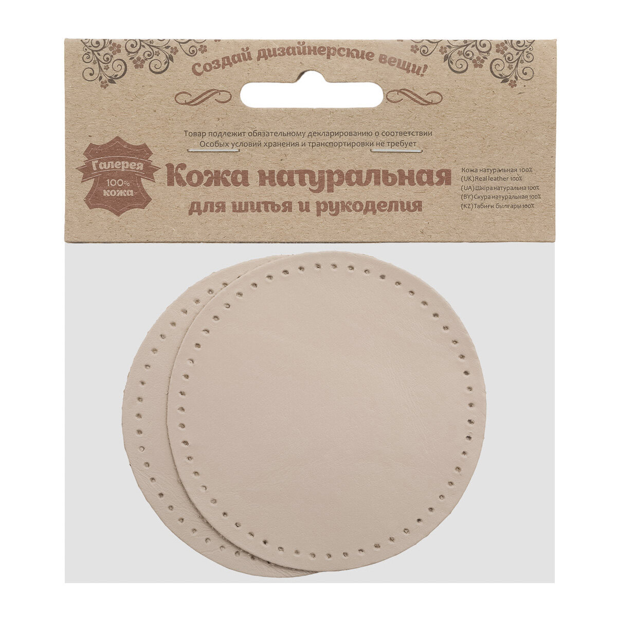 Сохранить9121 Заплатки пришивные из кожи, круг d-8см с перфорацией, 2шт/упак, 100% кожа (06 бежевый) интересное: