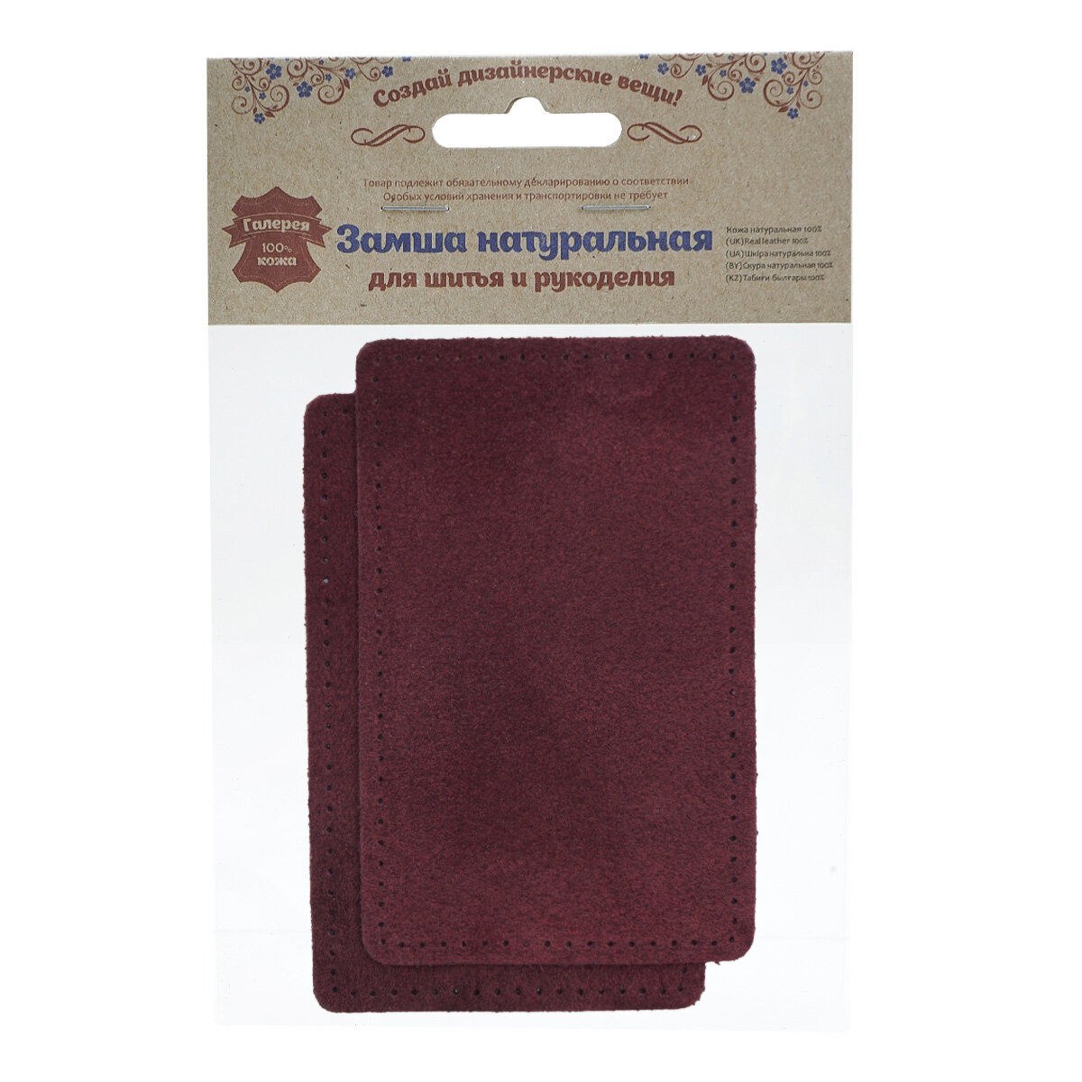 Сохранить59123 Заплатки пришивные из замши, прямоугольник 8*12,7см с перфорацией, 2шт/упак, 100% кожа (31 бордовый) интересное: