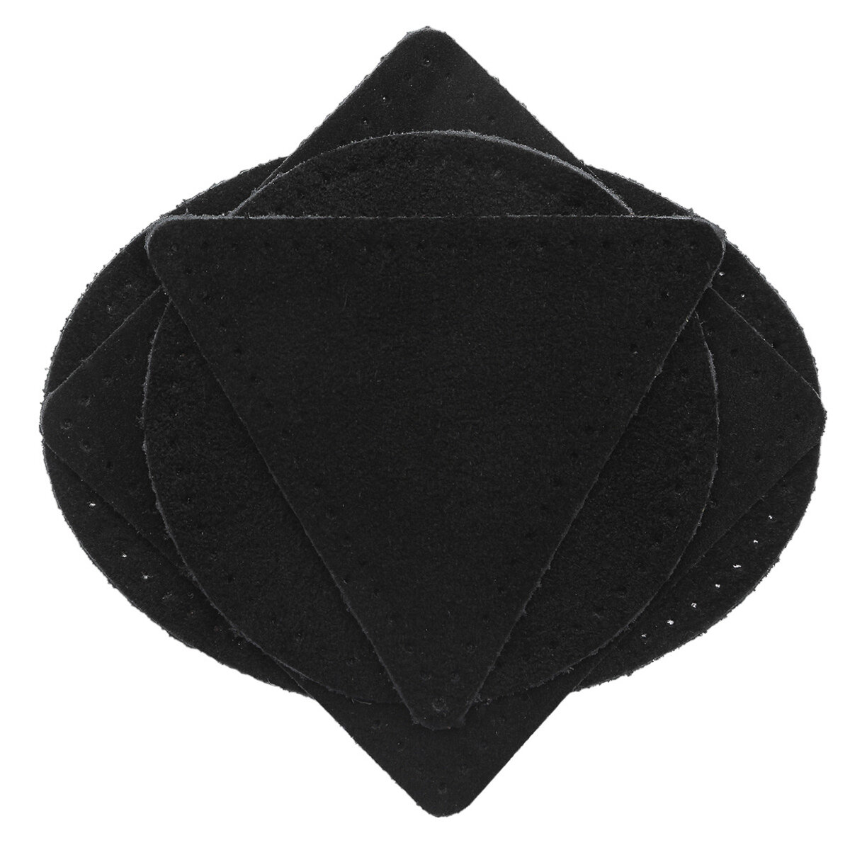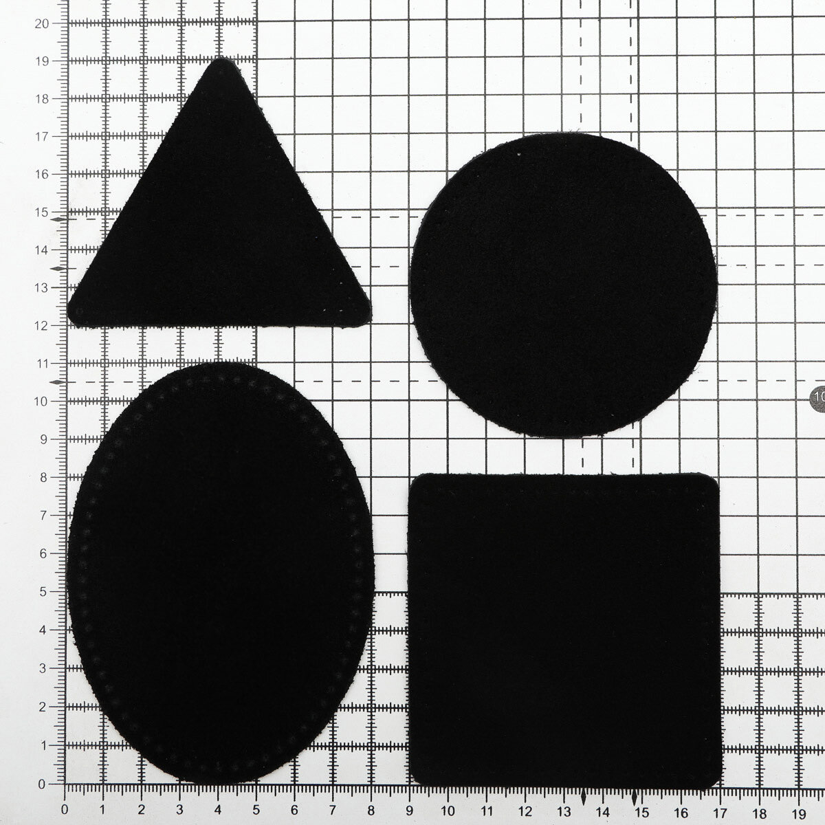 59723 Набор заплаток пришивных из замши, круг, квадрат, треугольник, овал 6см, с перфорацией, 4шт/уп (20 черный)
