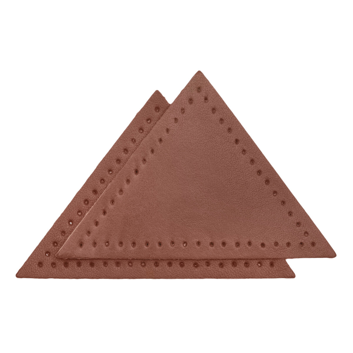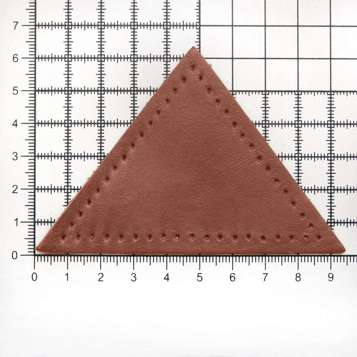9126 Заплатки пришивные из кожи, треугольник равносторонний 8см с перфорацией, 2шт/упак, 100% кожа (03 темно-коричневый)