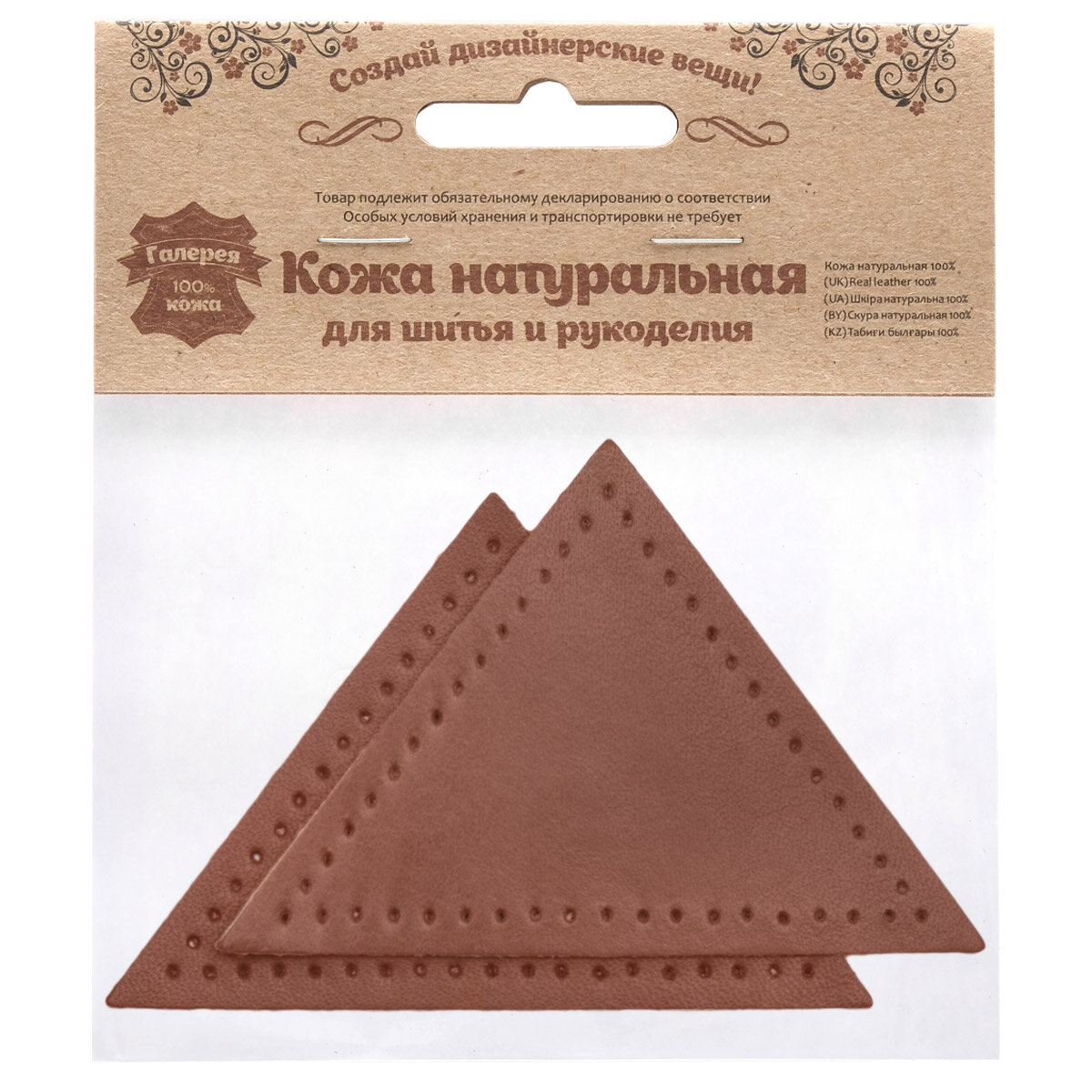 9902 Заплатки пришивные из кожи, треугольник равнобедр, стор. 6см, с перфорацией, 2шт/уп, 100% кожа (02 светло-коричневый)