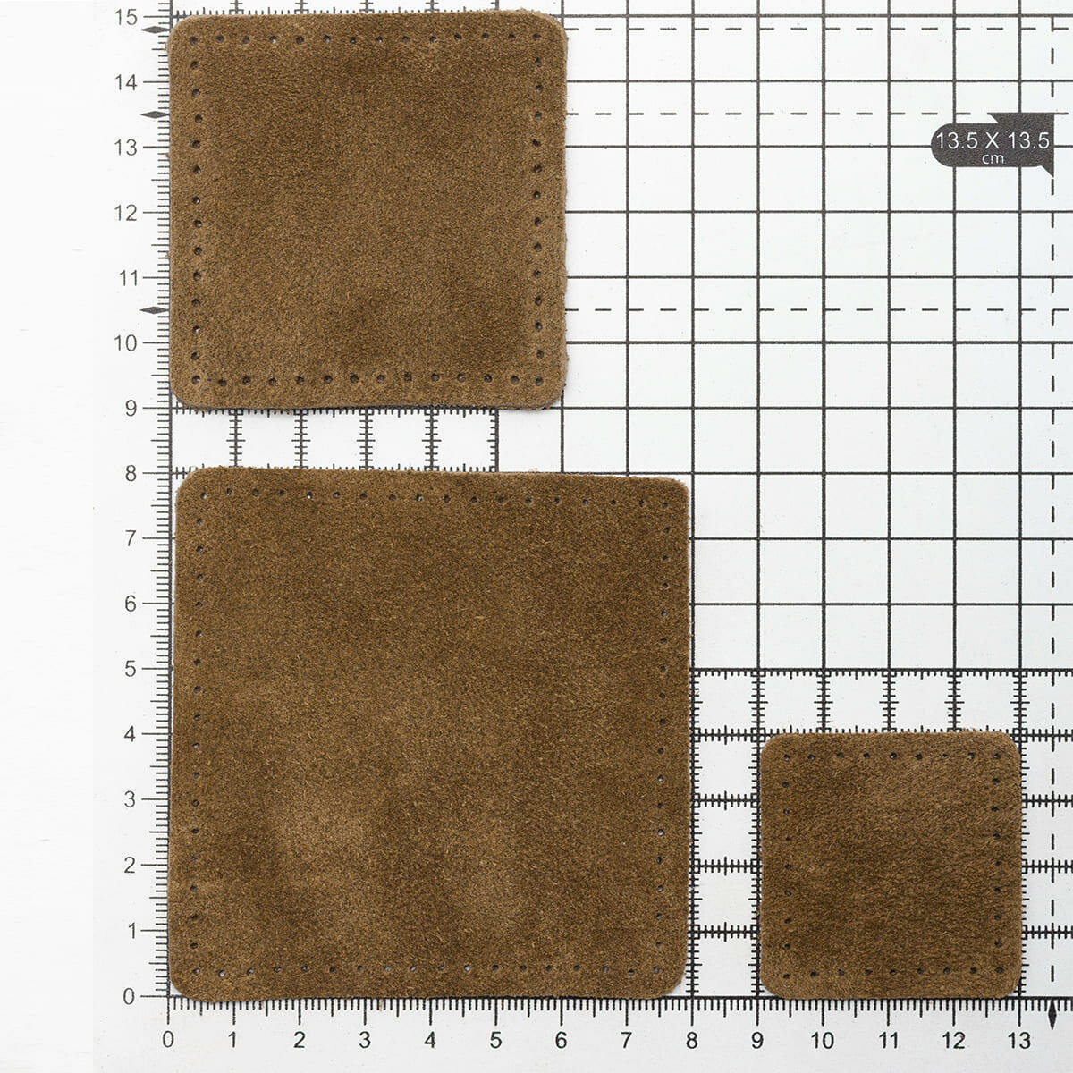 59402 Набор заплаток пришивных из замши, квадрат 4см, 6см и 8см, с перфорацией, 3шт/упак, 100% кожа (21 темно-коричневый)