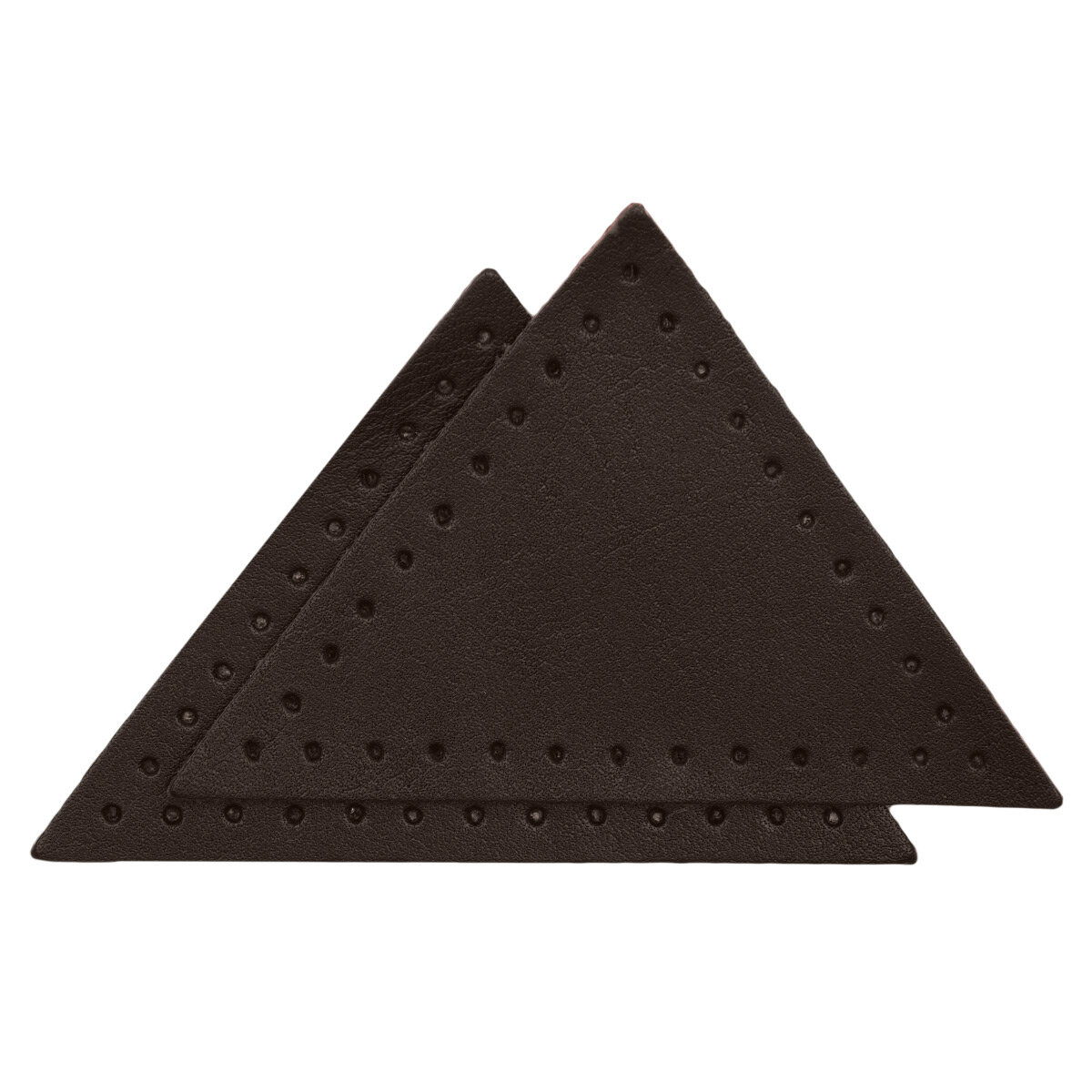 9126 Заплатки пришивные из кожи, треугольник равносторонний 8см с перфорацией, 2шт/упак, 100% кожа (03 темно-коричневый)