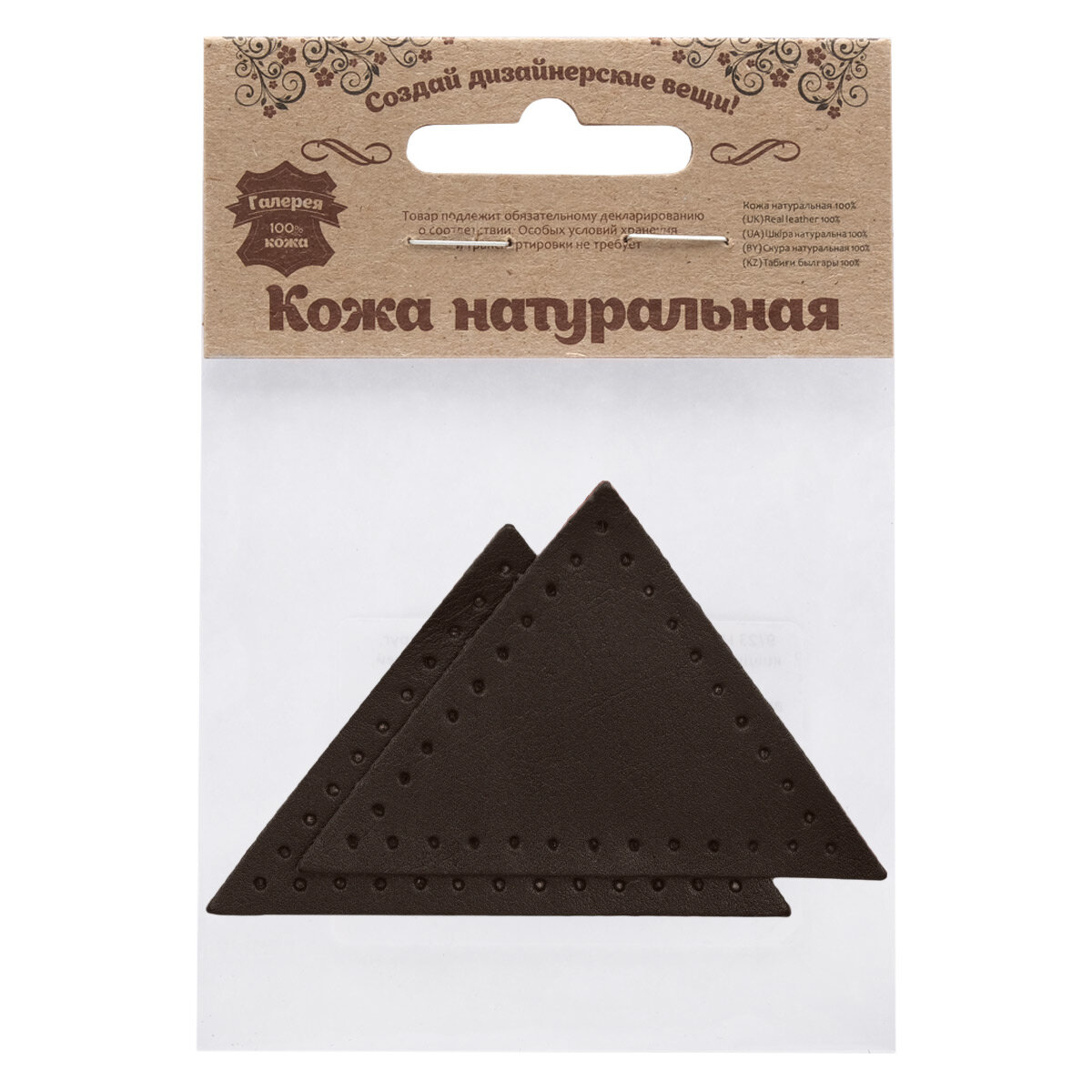 Купить 9902 Заплатки пришивные из кожи, треугольник равнобедр, стор. 6см, с перфорацией, 2шт/уп, 100% кожа (03 темно-коричневый)