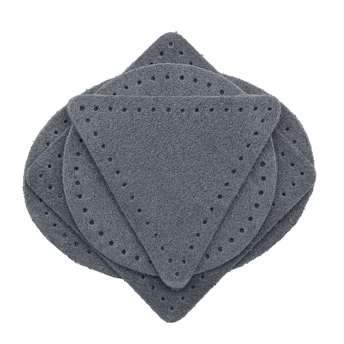 9126 Заплатки пришивные из кожи, треугольник равносторонний 8см с перфорацией, 2шт/упак, 100% кожа (07 серый)