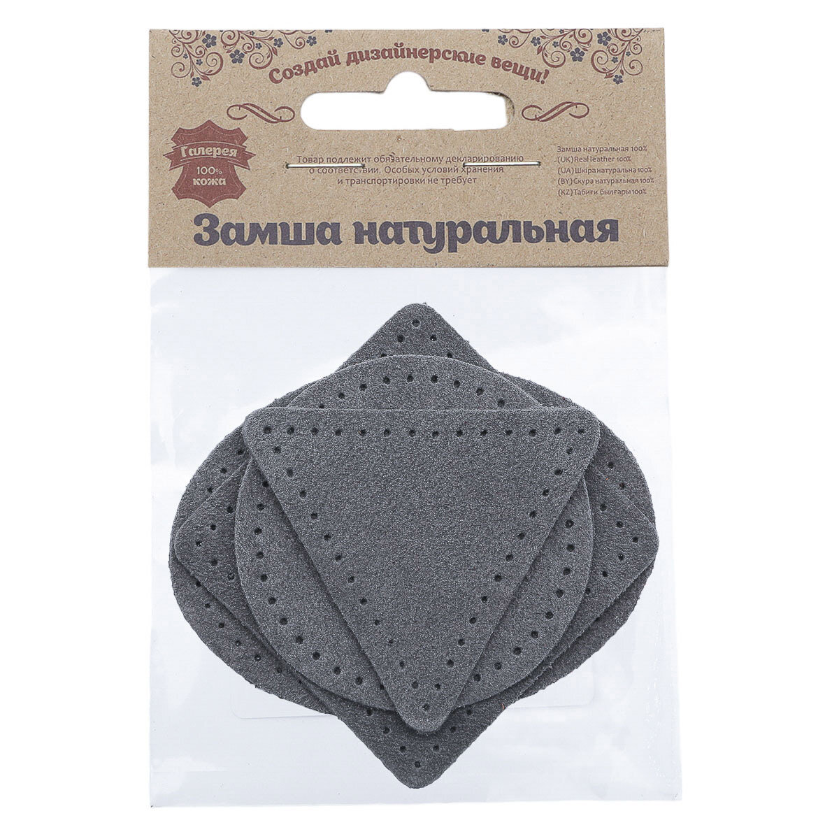 Сохранить59723 Набор заплаток пришивных из замши, круг, квадрат, треугольник, овал 6см, с перфорацией, 4шт/уп (26 серый) интересное: