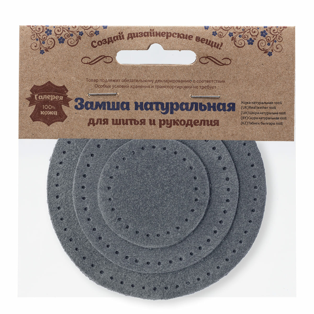 Купить 59401 Набор заплаток пришивных из замши, круг d-4см, 6см и 8см, с перфорацией, 3шт/упак, 100% кожа (26 серый)