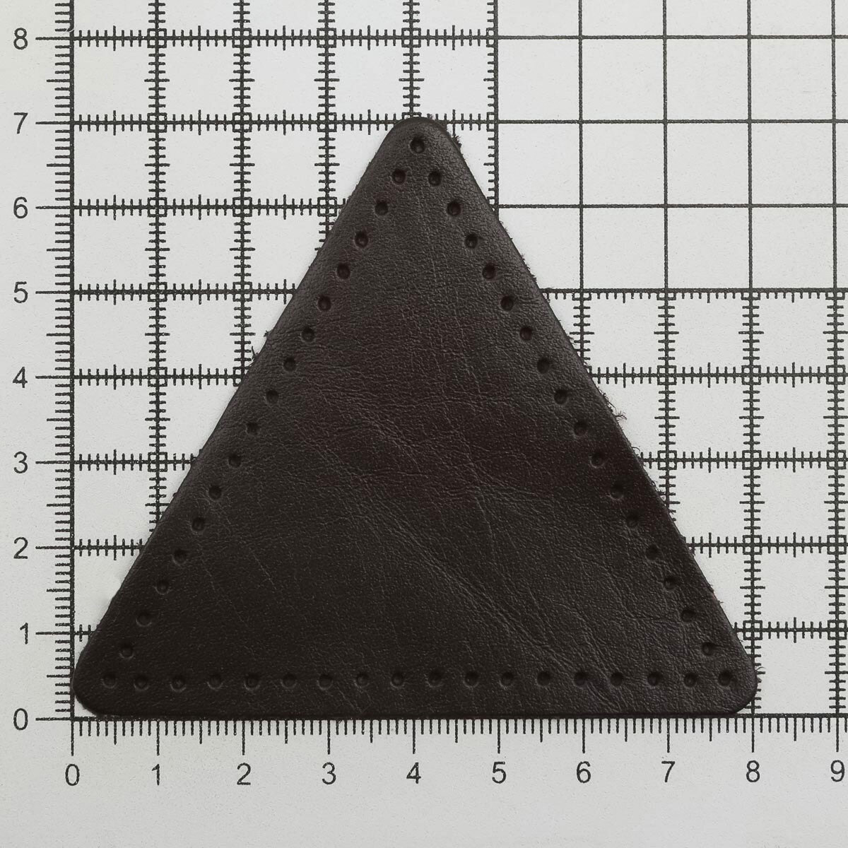 Купить 9126 Заплатки пришивные из кожи, треугольник равносторонний 8см с перфорацией, 2шт/упак, 100% кожа (03 темно-коричневый)
