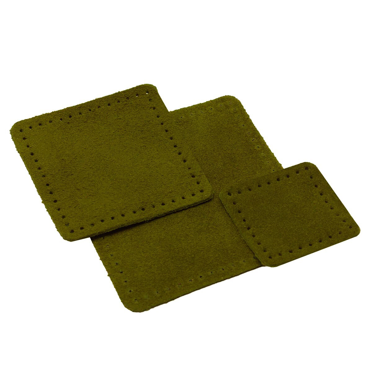 Купить 59402 Набор заплаток пришивных из замши, квадрат 4см, 6см и 8см, с перфорацией, 3шт/упак, 100% кожа (33 хаки)
