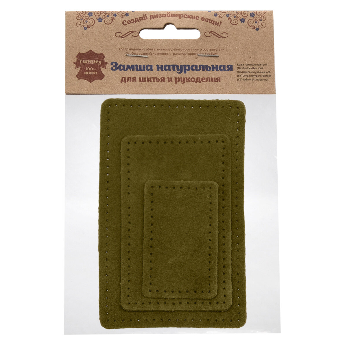 Купить 59403 Набор заплаток пришив. из замши, прямоуг-к 4*6,4см, 6*9,6см, 8*12,7см, с перфорацией, 3шт/упак (33 хаки)