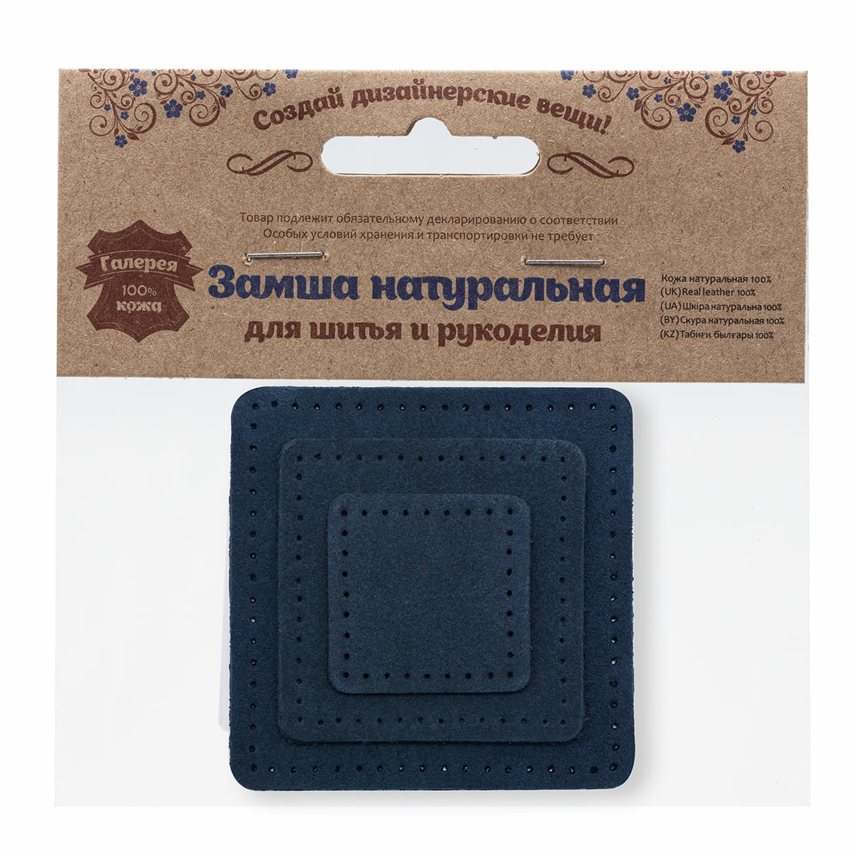 Купить 59402 Набор заплаток пришивных из замши, квадрат 4см, 6см и 8см, с перфорацией, 3шт/упак, 100% кожа (22 темно-синий)