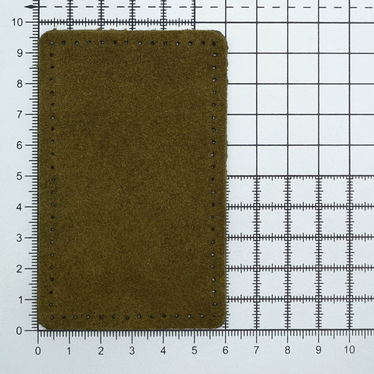 59123 Заплатки пришивные из замши, прямоугольник 8*12,7см с перфорацией, 2шт/упак, 100% кожа (33 хаки)
