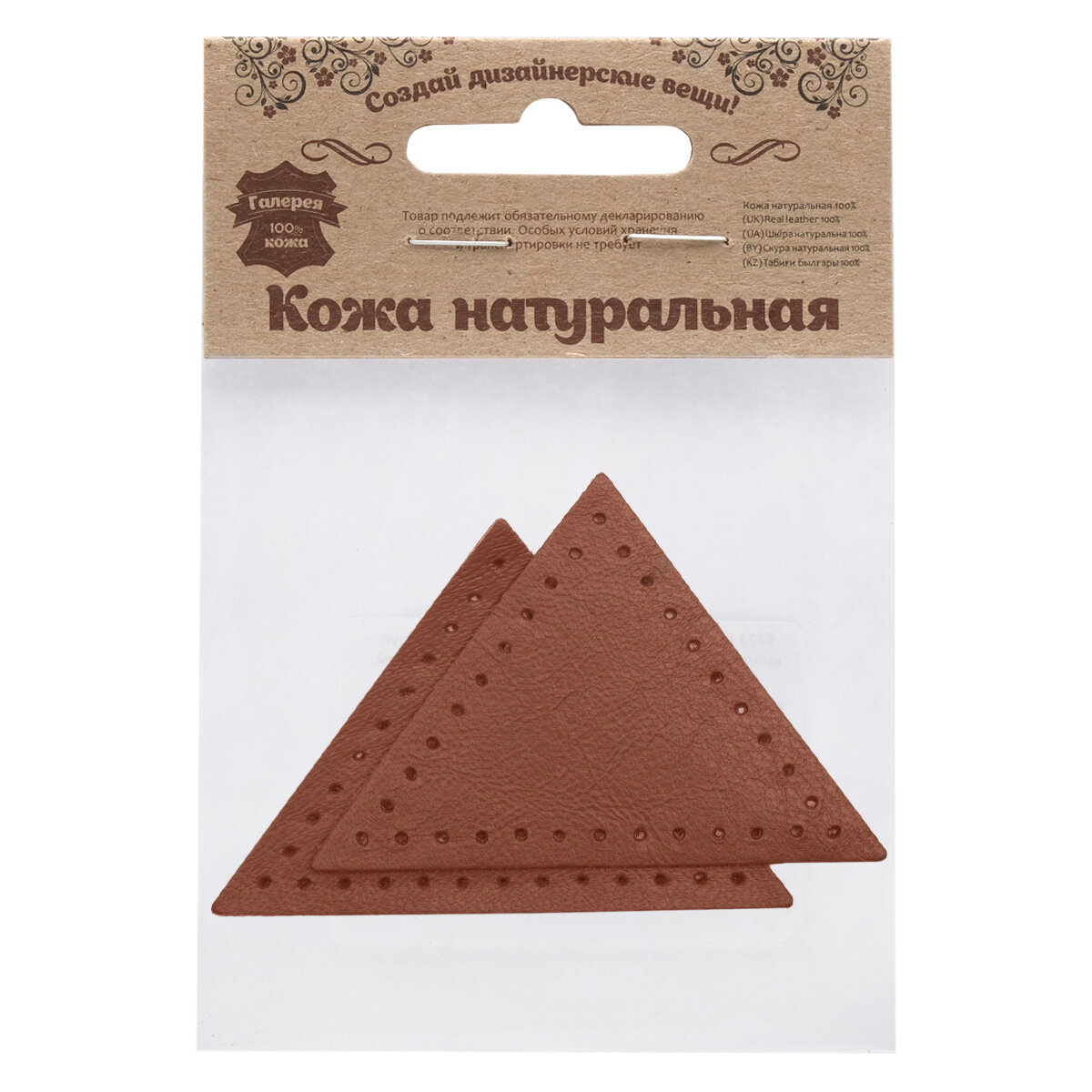 Купить 9902 Заплатки пришивные из кожи, треугольник равнобедр, стор. 6см, с перфорацией, 2шт/уп, 100% кожа (02 светло-коричневый)