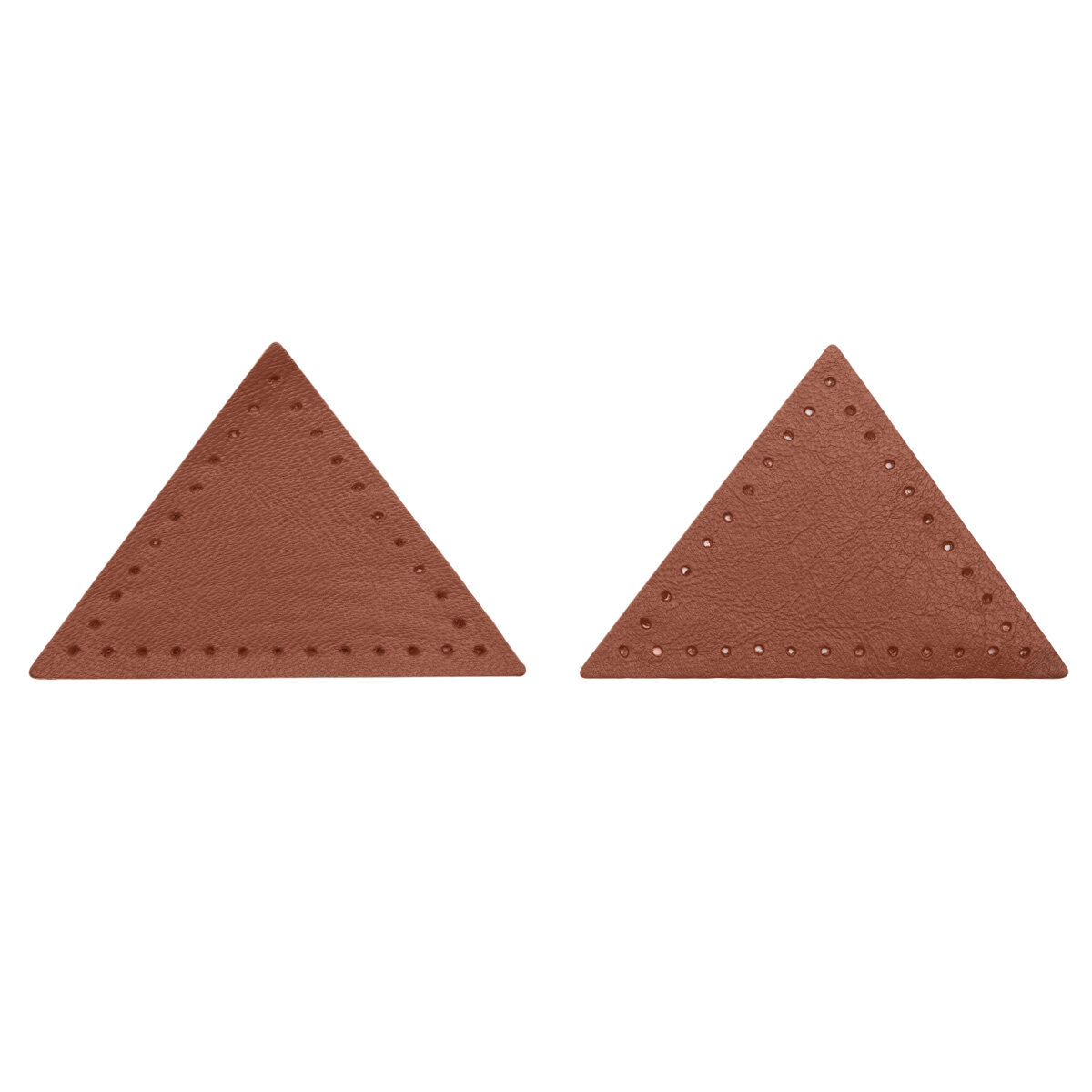 9126 Заплатки пришивные из кожи, треугольник равносторонний 8см с перфорацией, 2шт/упак, 100% кожа (03 темно-коричневый)