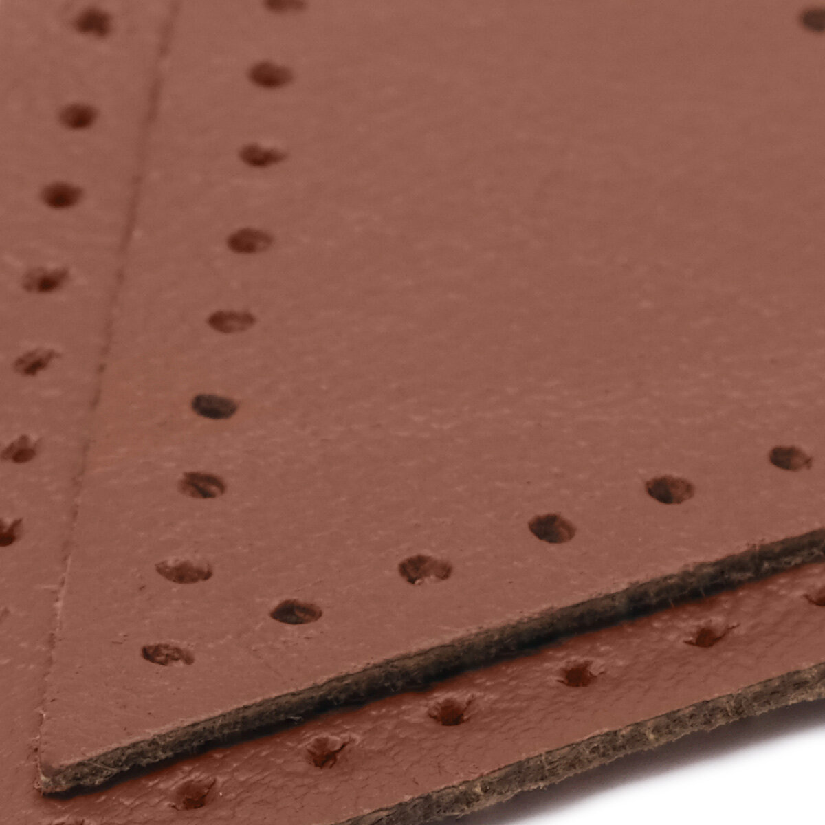 9122 Заплатки пришивные из кожи, квадрат 8см с перфорацией, 2шт/упак, 100% кожа (03 темно-коричневый)