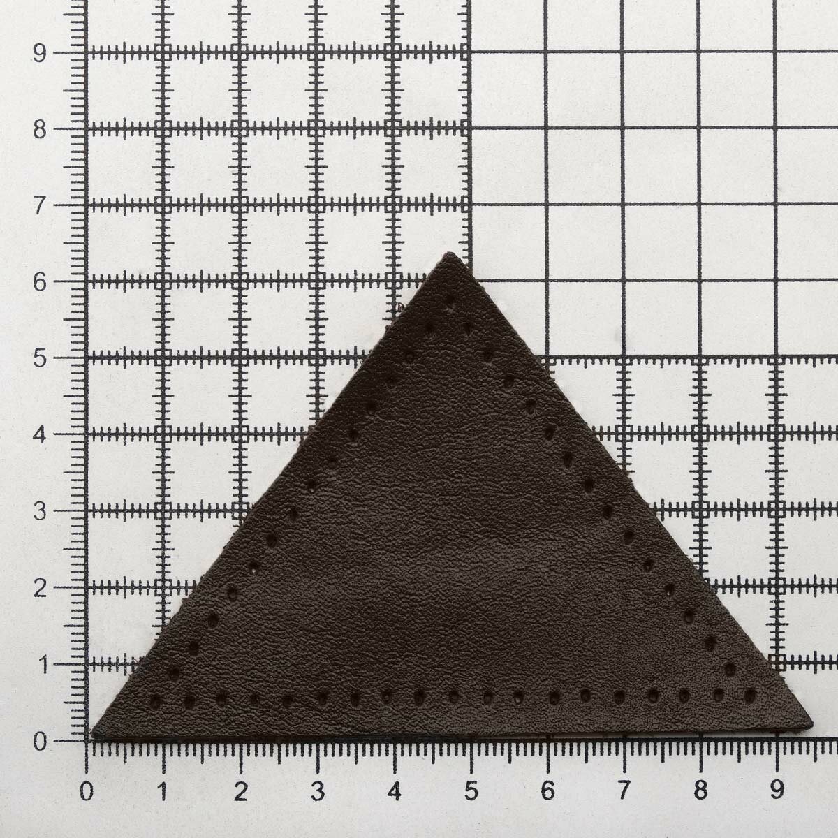 9126 Заплатки пришивные из кожи, треугольник равносторонний 8см с перфорацией, 2шт/упак, 100% кожа (03 темно-коричневый)