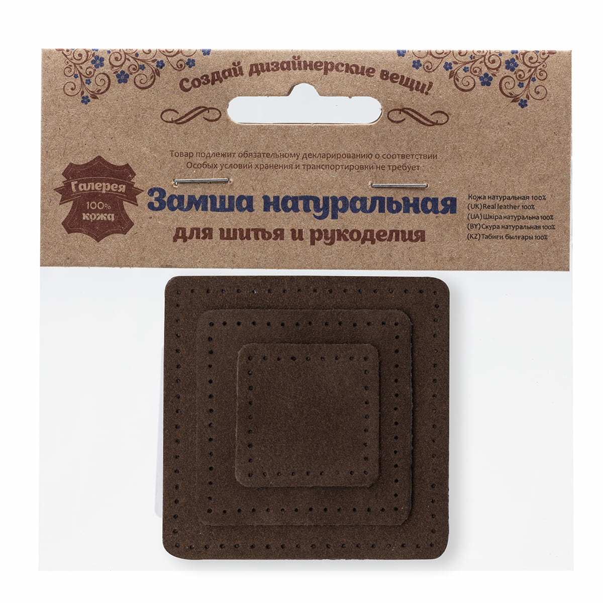 Купить 59402 Набор заплаток пришивных из замши, квадрат 4см, 6см и 8см, с перфорацией, 3шт/упак, 100% кожа (21 темно-коричневый)