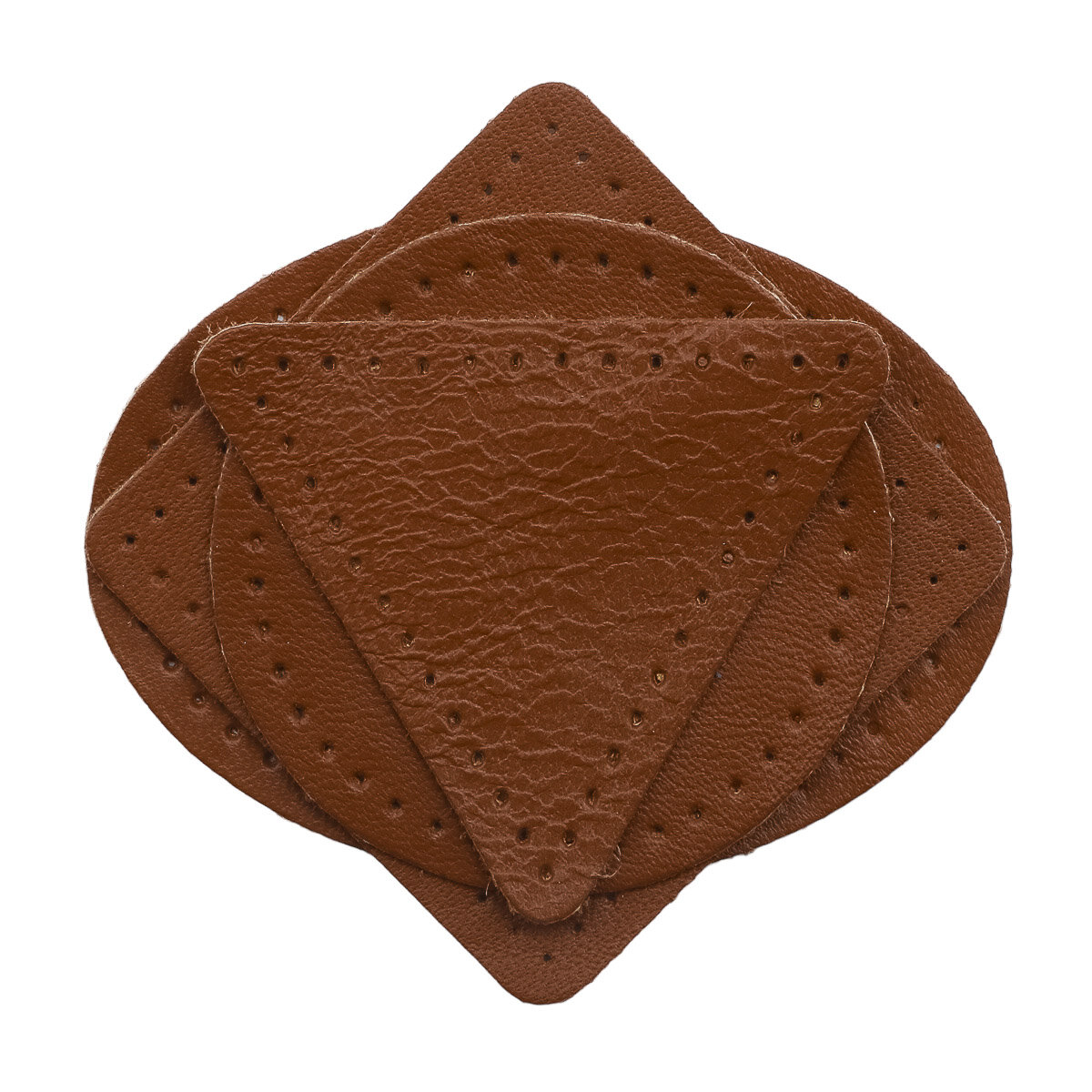 9723 Набор заплаток пришивных из кожи, круг, квадрат, треугольник, овал 6см, с перфорацией, 4шт/упак (03 темно-коричневый)