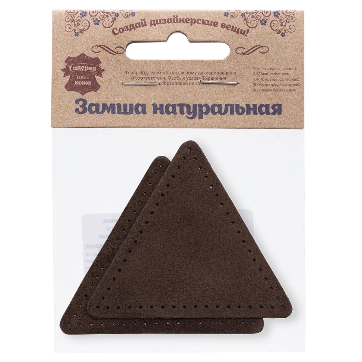 Купить 59126 Заплатки пришивные из замши, треугольник равносторонний 8см с перфорацией, 2шт/упак, 100% кожа (21 темно-коричневый)