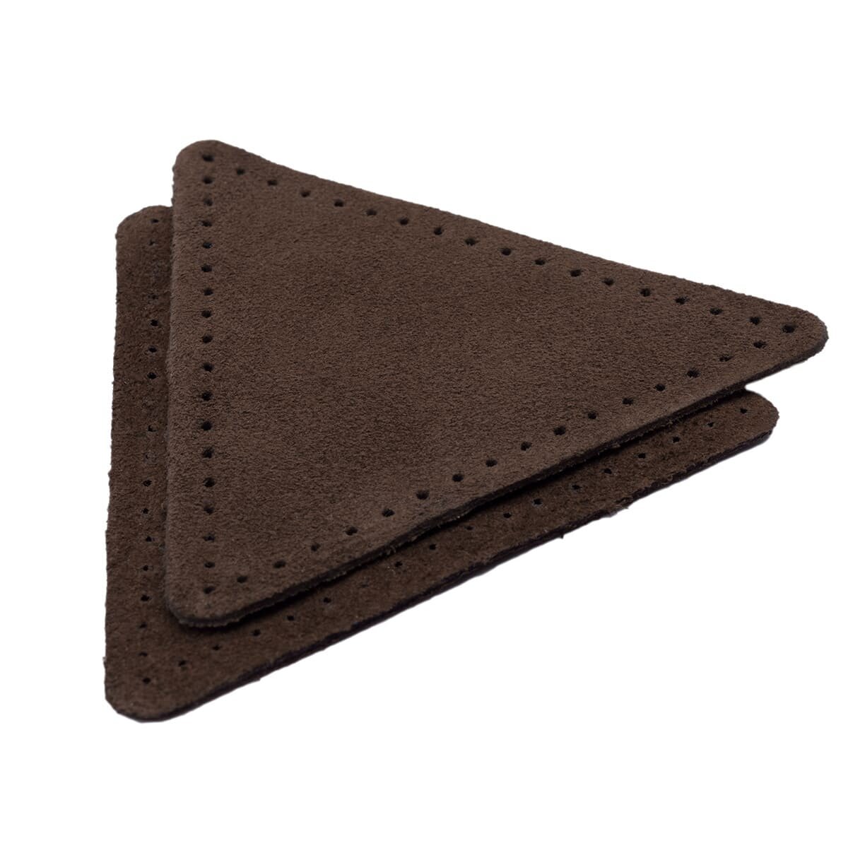 59903 Заплатки пришивные из замши, треугольник равнобедр, стор.8см, с перфорацией, 2шт/уп, 100%кожа (21 темно-коричневый)