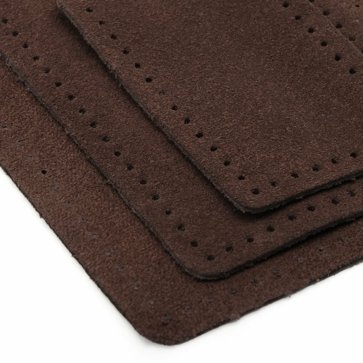 59743 Набор заплаток пришивных из замши, круг, квадрат, треугольник, овал 8см, с перфорацией, 4шт/уп (21 темно-коричневый)