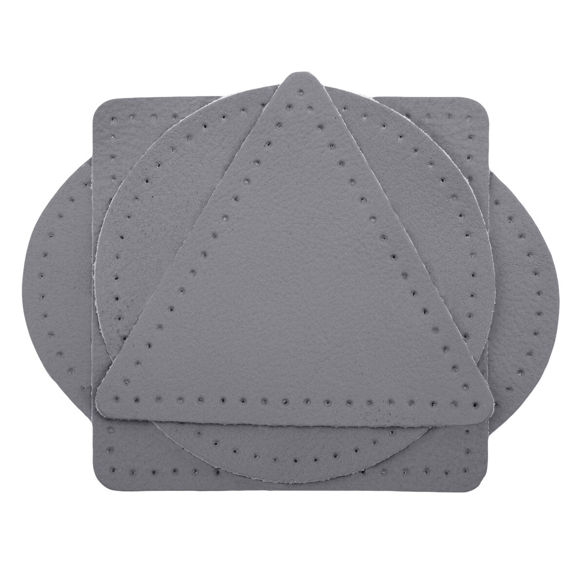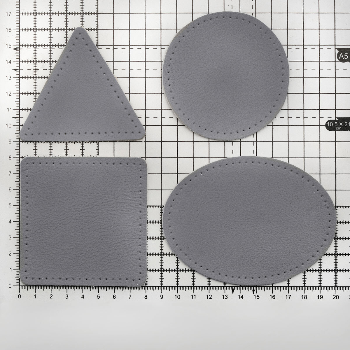 9703 Набор заплаток пришивных из кожи, круг, квадрат, треугольник, овал 4см, с перфорацией, 4шт/упак (07 серый)