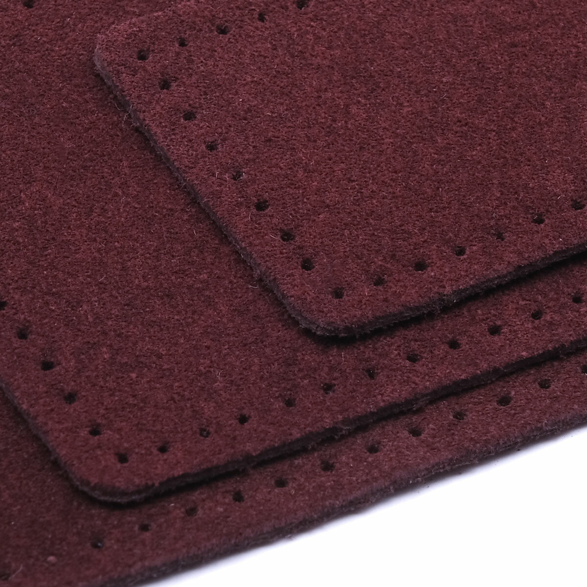 59901 Заплатки пришивные из замши, треугольник равнобедр, стор.5см, с перфорацией, 2шт/уп, 100%кожа (31 бордовый)