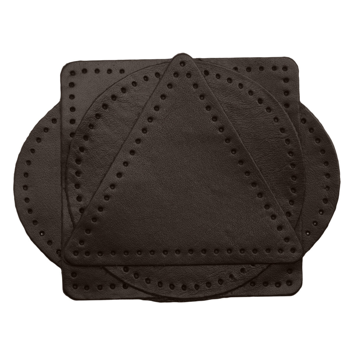 9723 Набор заплаток пришивных из кожи, круг, квадрат, треугольник, овал 6см, с перфорацией, 4шт/упак (03 темно-коричневый)