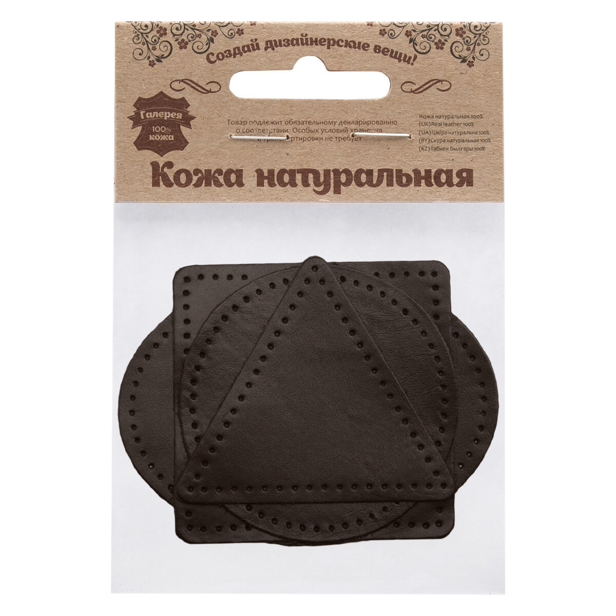 Сохранить9743 Набор заплаток пришивных из кожи, круг, квадрат, треугольник, овал 8см, с перфорацией, 4шт/упак (03 темно-коричневый) интересное: