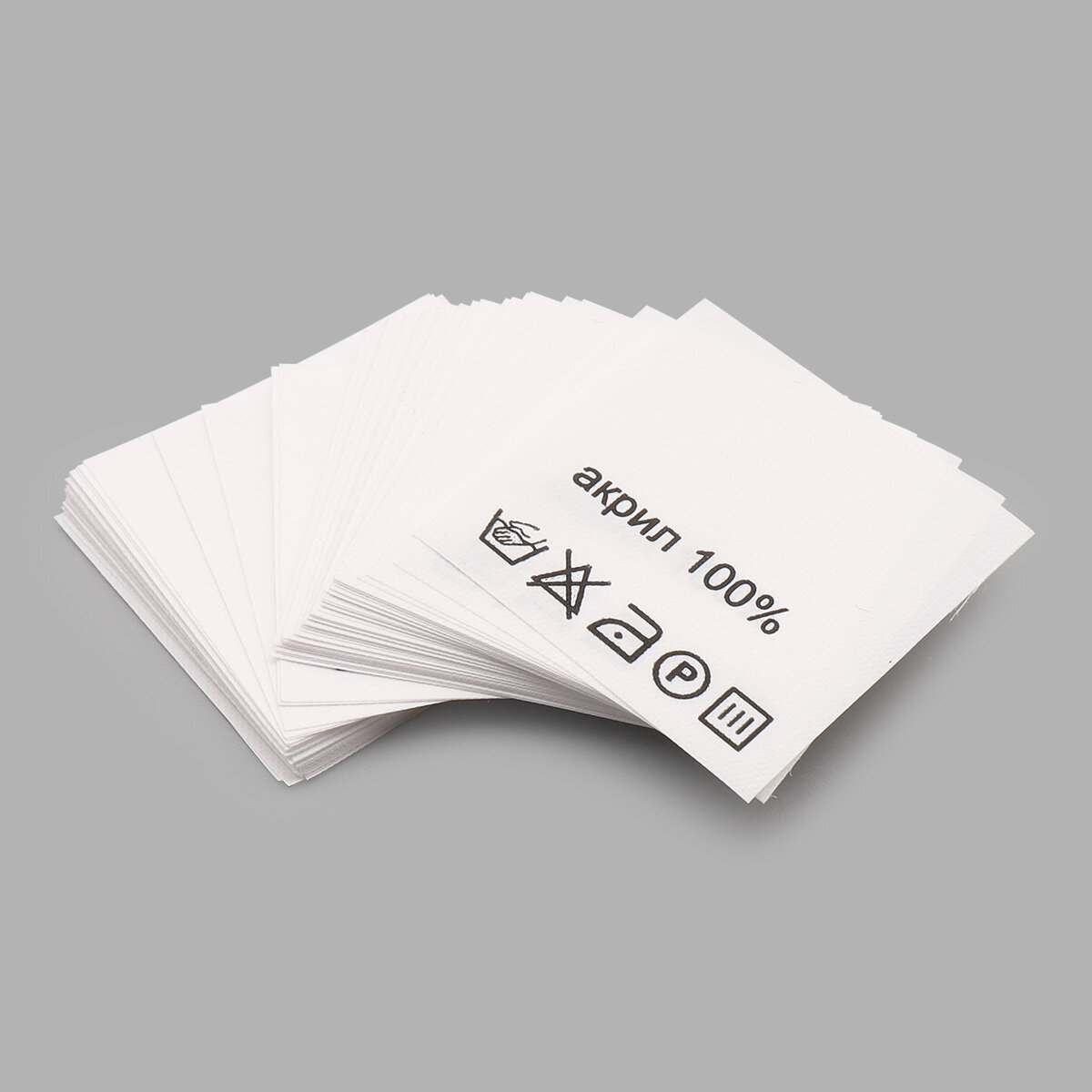 Этикетка-составник 30*30 мм, полиэстер, 100 шт (упак), белый фон, черный шрифт (NWA) (акрил 75% шерсть 20% эластан 5%)