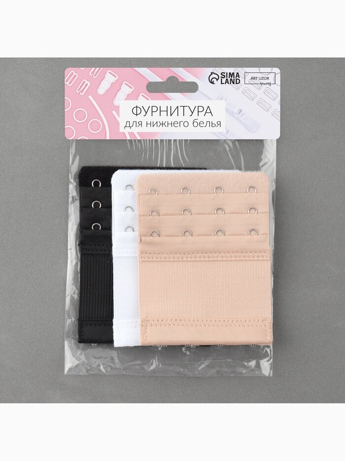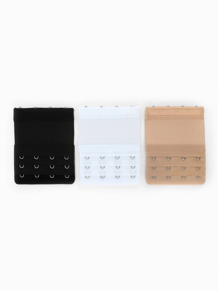 Застёжка-удлинитель для бюстгальтера, 3 ряда 2 крючка, 3,2 × 10,5 см, 3 шт, цвет белый/бежевый/чёрный
