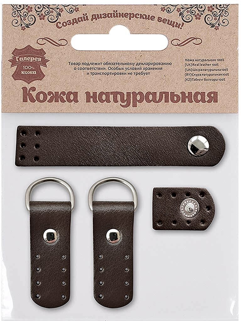Фурнитура для сумок Галерея Застежка 2х10,1 см, 2 петельки 2х5,4 см, 100% кожа, цвет 82, темно-коричневый, 1406