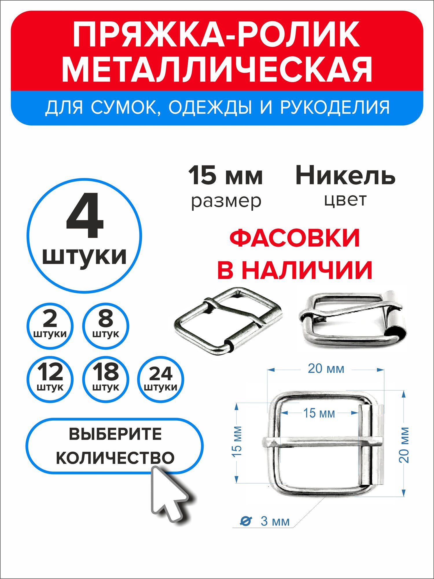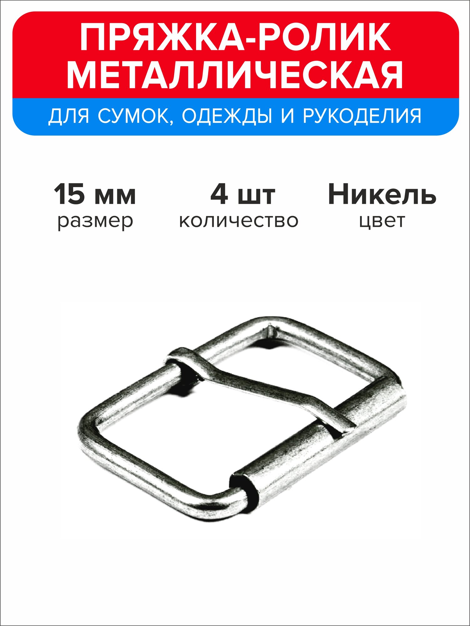 Купить Пряжка-ролик металлическая 15 мм, 4 штуки