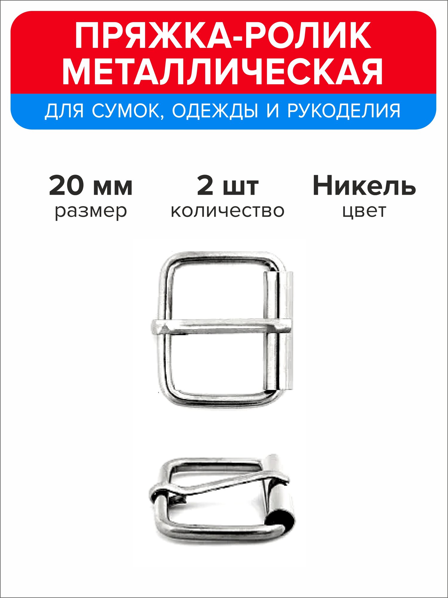 Купить Пряжка-ролик металлическая 20 мм, 2 штуки