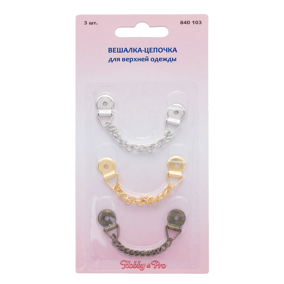 Вешалка цепочка для верхней одежды пришивная, Hobby&Pro, 3 шт (серебро, золото, бронза) интересное: