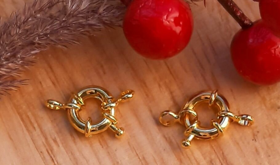 Застежка, замок для бижутерии на 1 нить золото " Штурвал " d 15 мм 2 штуки