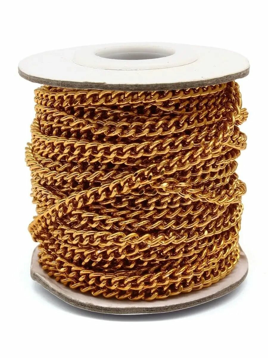 Купить Цепь декоративная для рукоделия 4,7 мм*3,5 мм, бобина 10 м, золото, Айрис (алюминий)