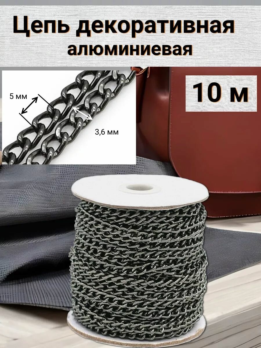 Цепь декоративная алюминиевая Айрис, звено 5*3,6 мм, бобина 10 м (черный никель) интересное: