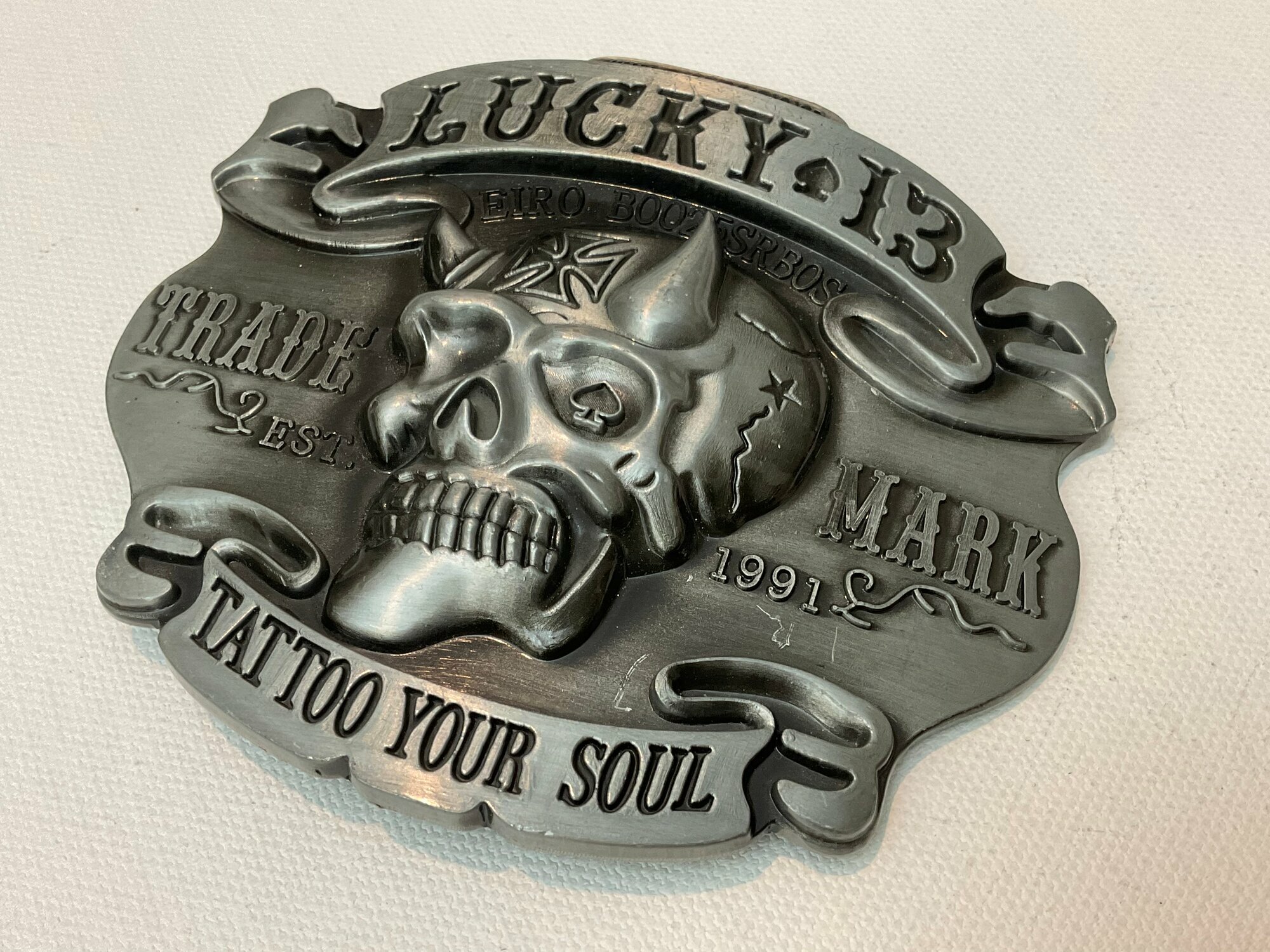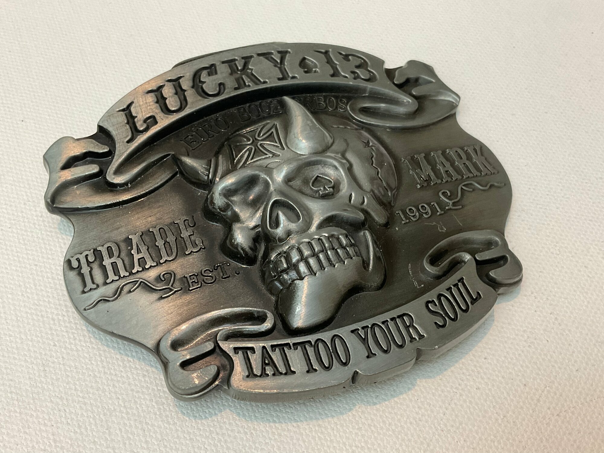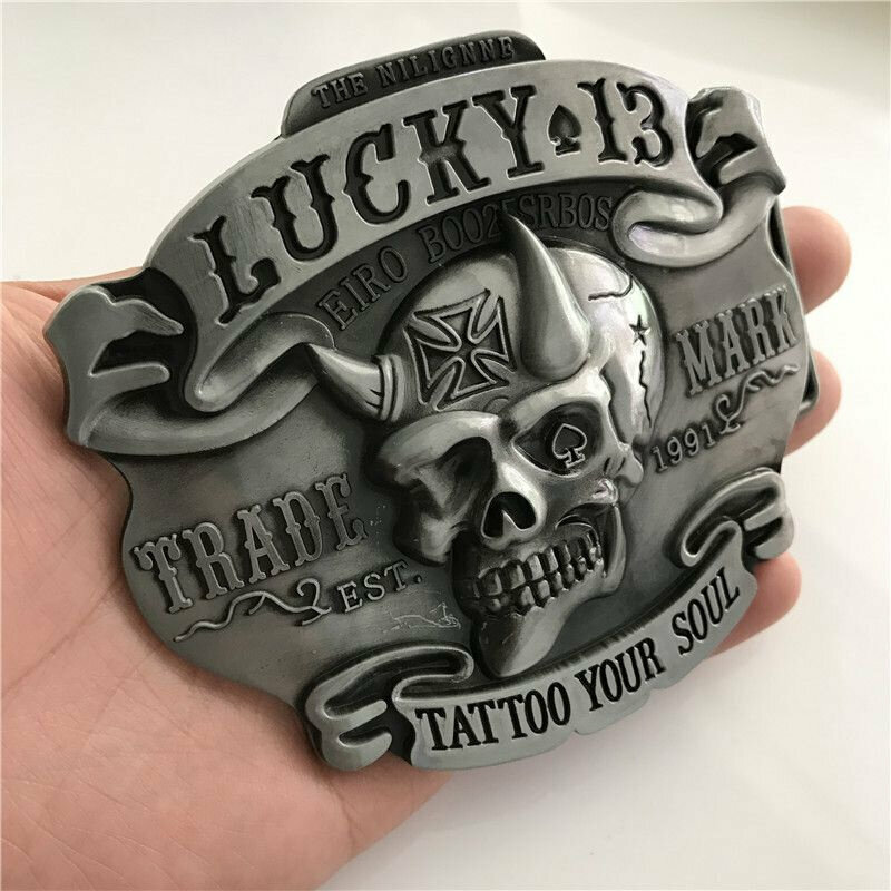 Купить Пряжка байкерская для ремня (бляха) Lucky 13 - Tattoo your soul