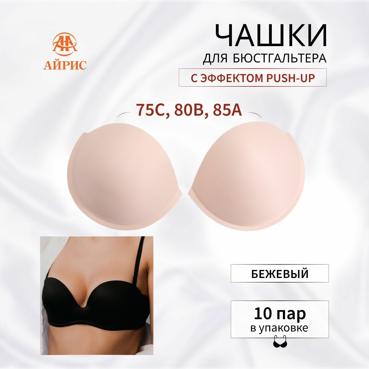 Купить Чашечки для бюстгальтера без уступа, с наполнением и эффектом Push-up, Айрис, 3514, размер 36 (Бежевый), 10 пар