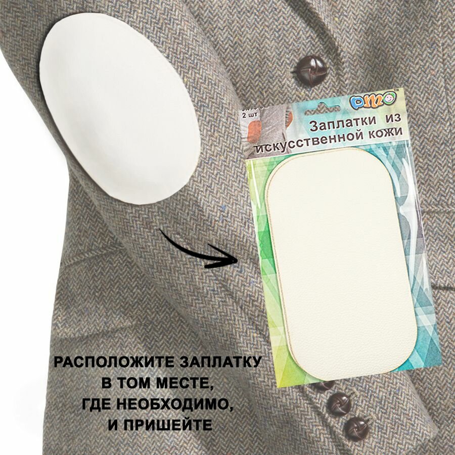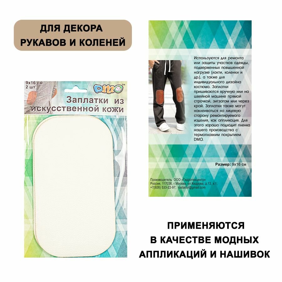 Заплатки из эко кожи DMO 90х160 мм белые / Аппликация пришивная из искусственной кожи / Нашивка на одежду 2 шт. интересное: