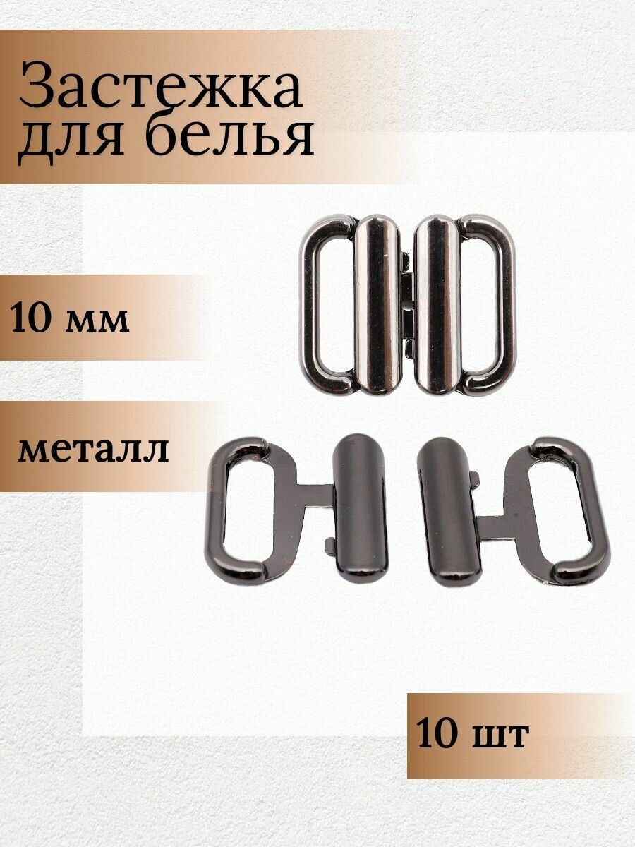 Застежка для купальника бикини разъемная, 10 мм, металл, ГНУ14602 (черный никель), 10 шт интересное: