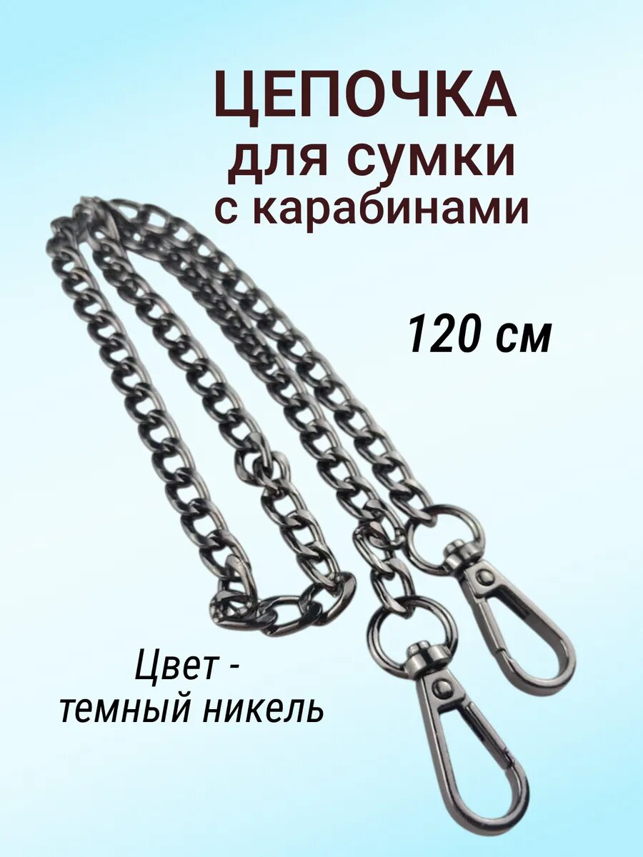 Цепочка для сумки с карабинами 120 см, цвет темный никель, металлическая интересное: