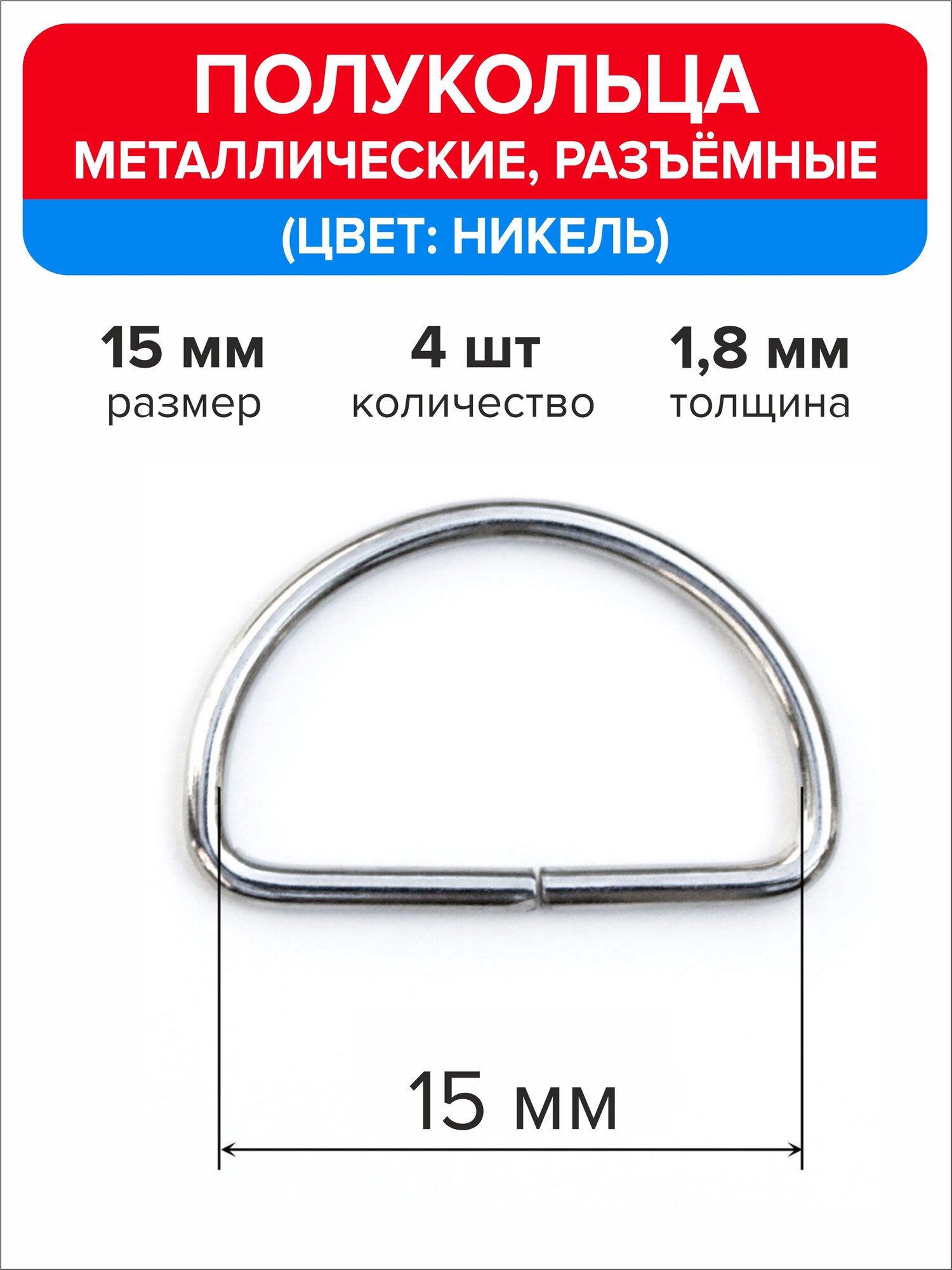 Купить Полукольца металлические для сумок, d кольцо 15 мм, 4 штуки