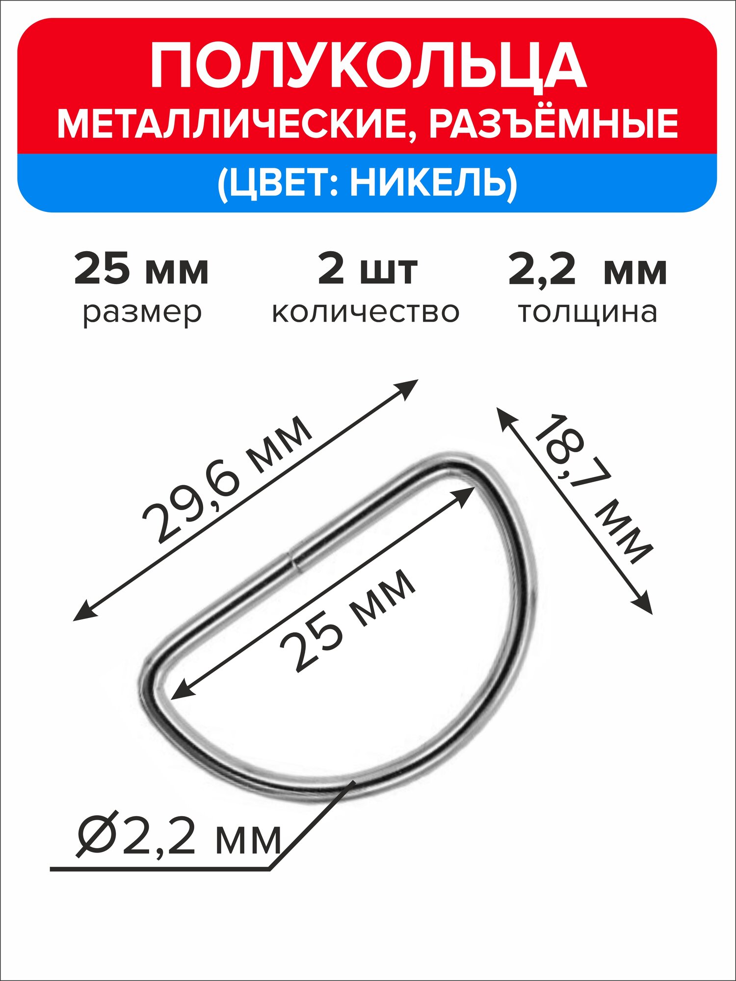 Купить Полукольца металлические для сумок, d кольцо 25 мм, 2 штуки