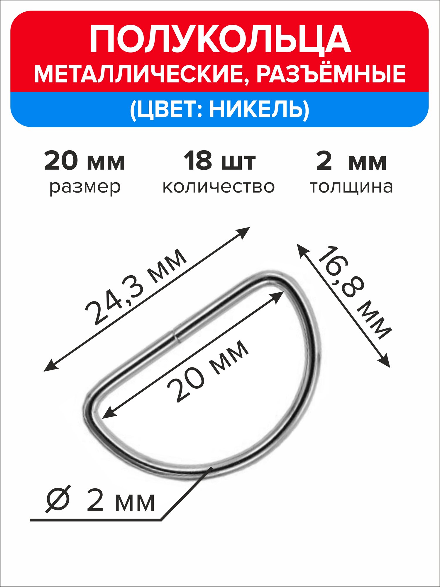 СохранитьПолукольца металлические для сумок, d кольцо 20 мм, 18 штук интересное: