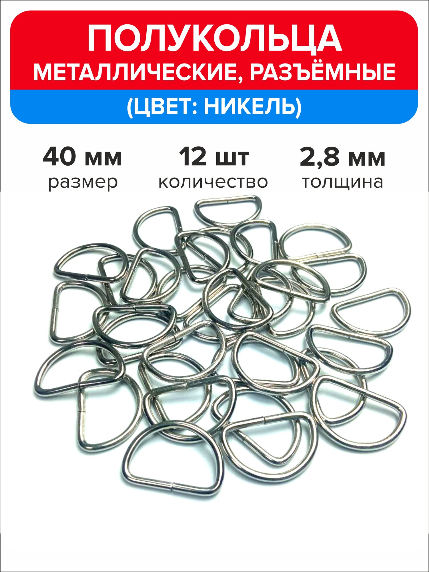 Ниже Вы можете прочитать отзывы на Полукольца металлические для сумок, d кольцо 40 мм, 12 штук, ознакомится с подробными характеристиками, посмотреть интересные обзоры и фотографии на Полукольца металлические для сумок, d кольцо 40 мм, 12 штук.