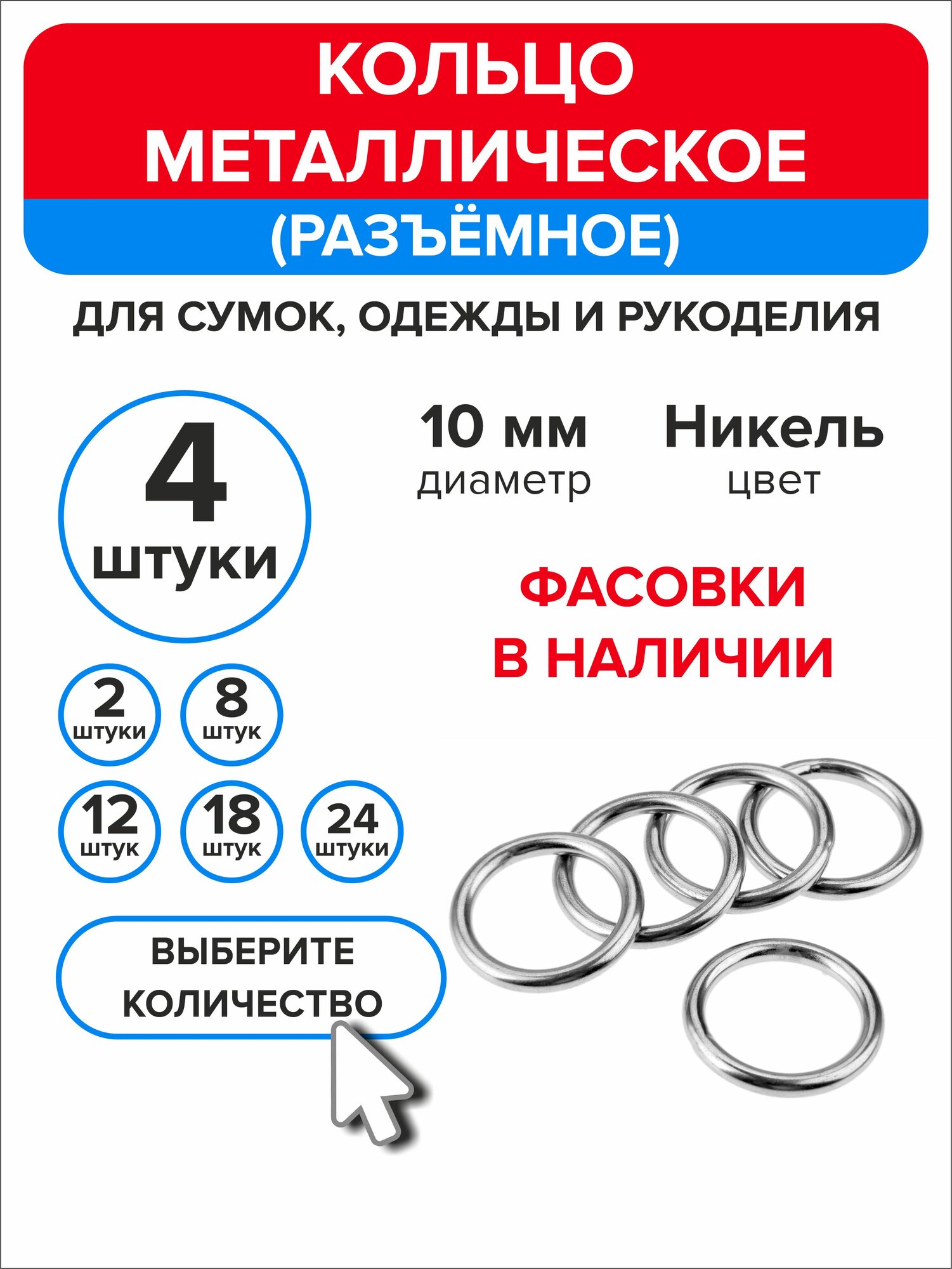 Купить Кольцо для сумок, рукоделия 10 мм, 4 штуки