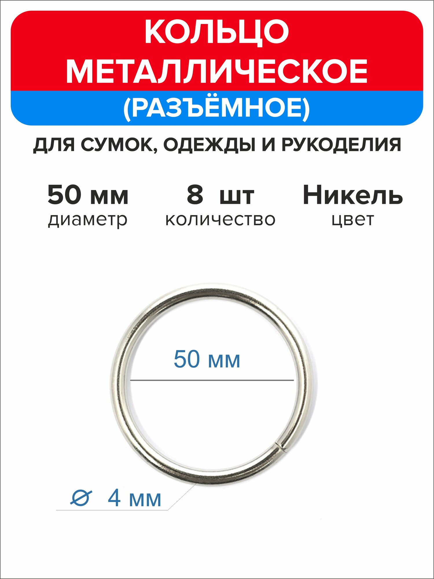 Кольцо для сумок, рукоделия 50 мм, 4 штуки